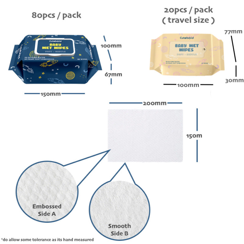 Generous Sizing: Our baby wet wipes are larger than most on the market, measuring 200 x 150mm. This means you'll need fewer wipes to get the job done. The convenient size also allows for easy folding, ensuring you can use them again and again.