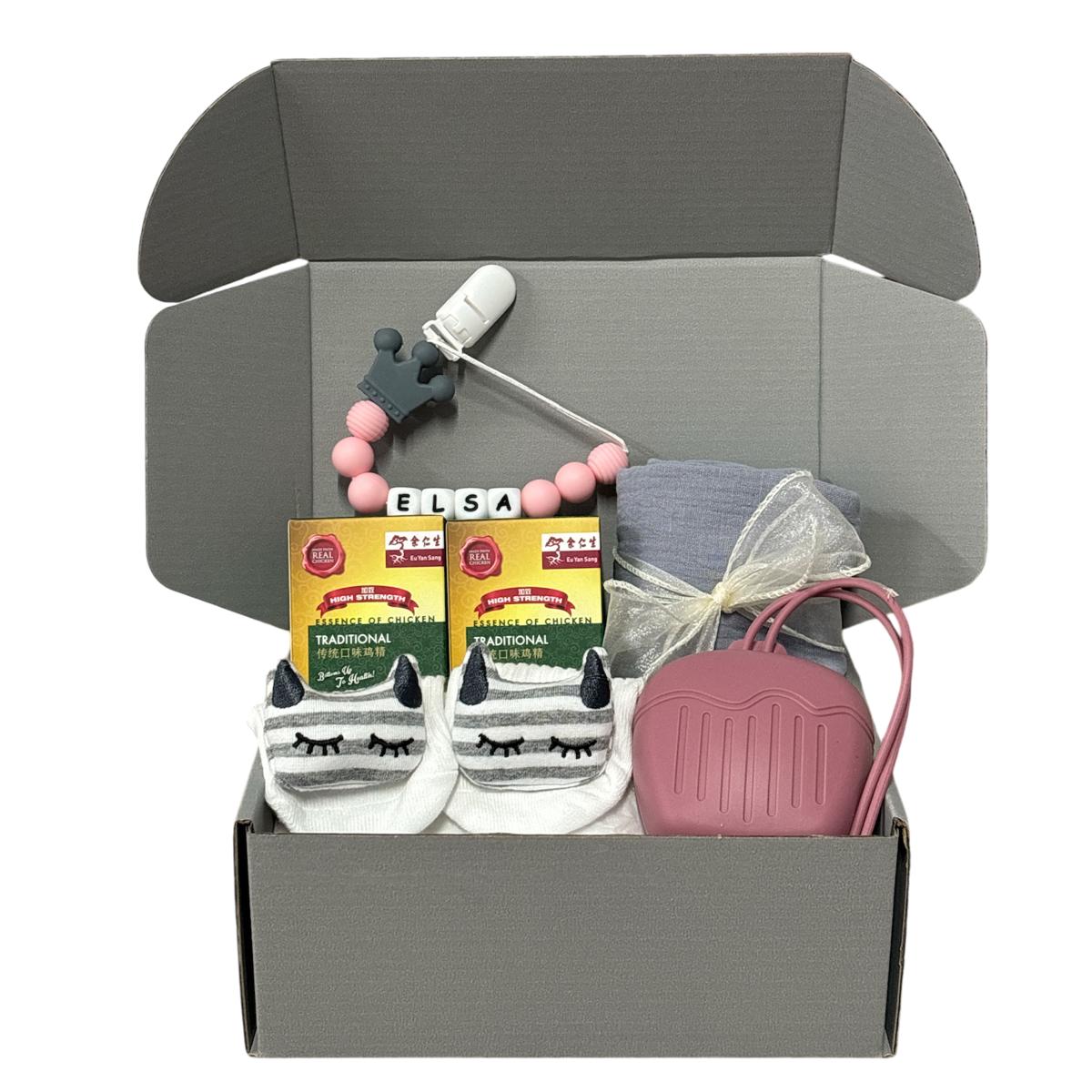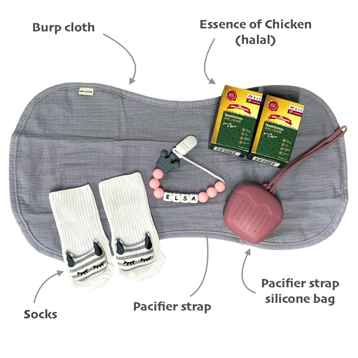 Lovely Mom and Baby Welcome Gift Set with Essence of Chicken and Personalised Pacifier Strap