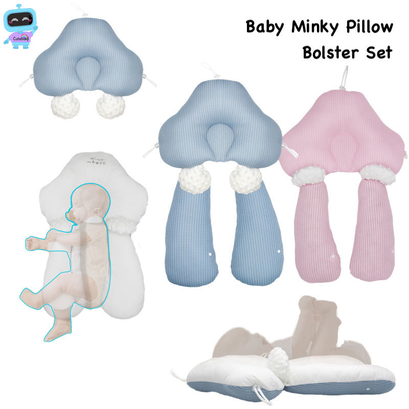 Baby Pillow with Bolster Soothing Minky Newborn 3D Flat Head Prevention