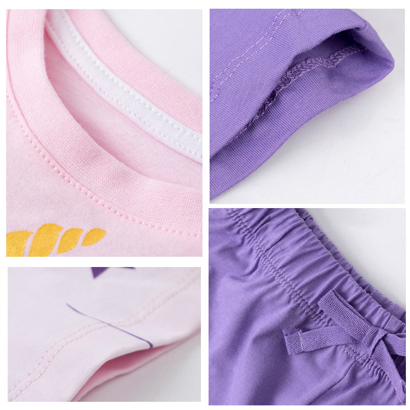 Girl T-Shirt and Shorts Set with Summer Unicorn Print